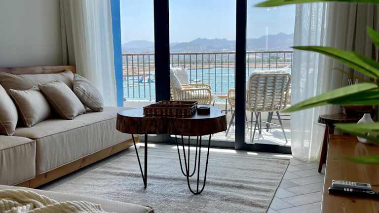 Aladdin Chalet 13 ist eine Ferienwohnung, die Meerblick bietet und über einen Balkon mit Wasserkocher verfügt. Zur Ausstattung gehören eine Klimaanlage, ein Garten, Grillmöglichkeiten, kostenloses WLAN sowie ein eigener Parkplatz.