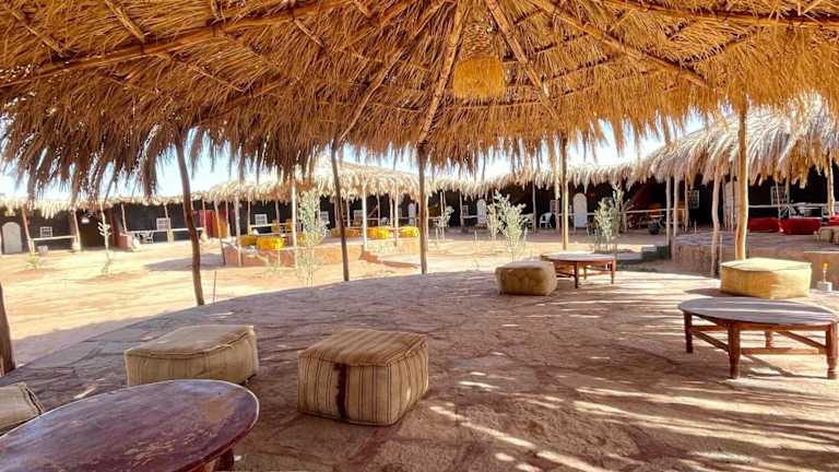 Die Aladdin Desert Lodge - Mhamid Sahara Camp befindet sich in ruhiger Lage in El Gouera, umgeben von der beeindruckenden Landschaft der Erg Chegaga Dünen.