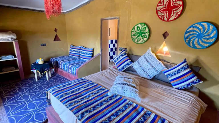 Die Unterkunft Aladdin Desert Lodge - Mhamid Sahara Camp bietet gemütliche Lodges mit Eigenverantwortung für eine sichere und angenehme Atmosphäre. Gratis WLAN ist verfügbar, und die Lodge verfügt über eine Sonnenterrasse sowie eine Bar, die die Gäste einlädt, die Abende entspannt ausklingen zu lassen.