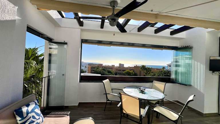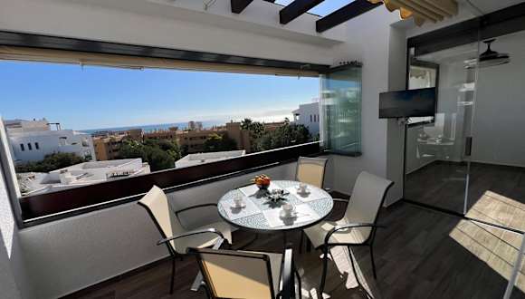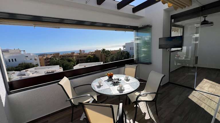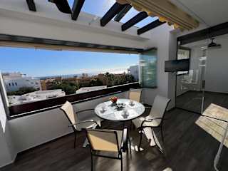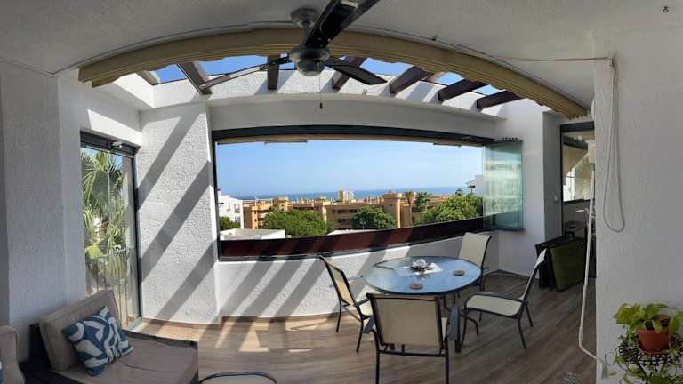 AlaMar Cala Mijas - Premium SemiPenthouse - Panoramic Views bietet eine komfortable Ferienwohnung mit Blick auf das Meer sowie die Berge. Die Unterkunft verfügt über einen Außenpool, einen Garten und eine Terrasse. Es wird kostenloses WLAN angeboten und die Rezeption ist rund um die Uhr besetzt.