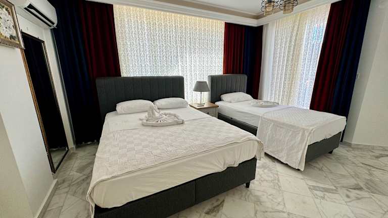 Die Unterkunft befindet sich direkt am Strand in Alanya, in der Nähe des Atatürk-Platzes, welcher 8,4 km entfernt ist. Der Wasserpark Alanya liegt 9,4 km entfernt. Der Flughafen Gazipaşa ist der nächstgelegene Flughafen und befindet sich 42 km von der Unterkunft entfernt.