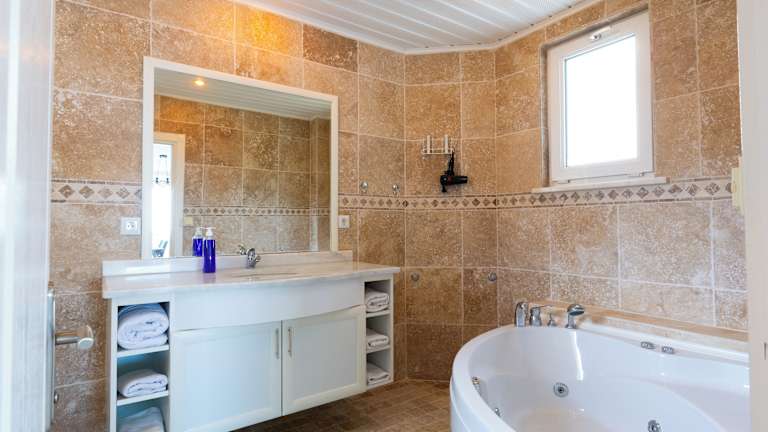 Die Villa ist klimatisiert und verfügt über 5 Schlafzimmer sowie ein Wohnzimmer. Eine voll ausgestattete Küche mit Kühlschrank und Kaffeemaschine steht zur Verfügung. Es gibt 4 Badezimmer, die mit einer Dusche und einem Whirlpool ausgestattet sind. Ein Flachbild-TV mit Satellitenkanälen sowie ein Laptop sind vorhanden.