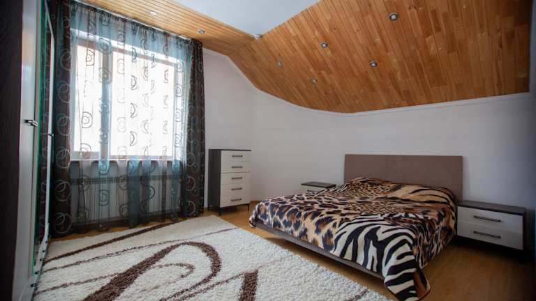 Die Unterkunft Alatau Гостевой Дом bietet eine heimelige Atmosphäre und umfasst ein Landhaus mit 4 Schlafzimmern, einem Wohnzimmer sowie einer voll ausgestatteten Küche.