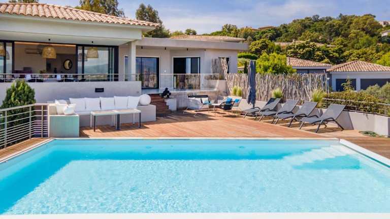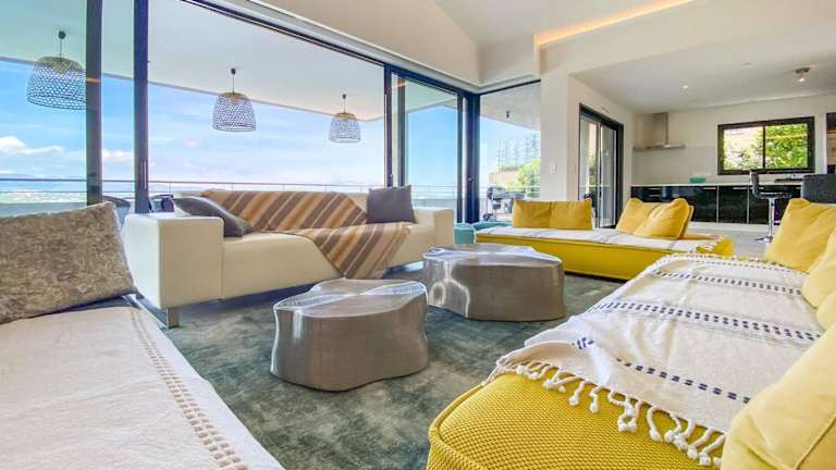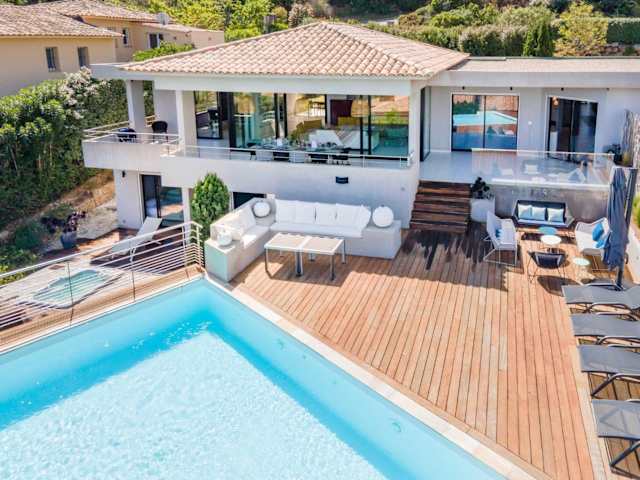 Die Villa bietet 5 Schlafzimmer und eine gut ausgestattete Küche mit Kühlschrank und Geschirrspüler. Die 7 Badezimmer sind mit einer Dusche, Haartrockner und Waschmaschine ausgestattet. Handtücher und Bettwäsche werden zur Verfügung gestellt.