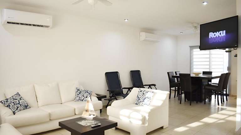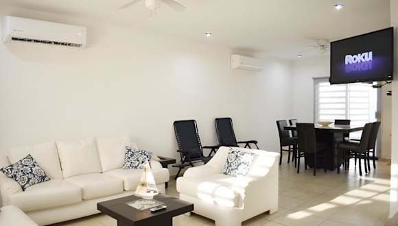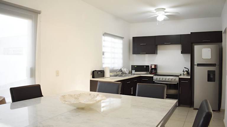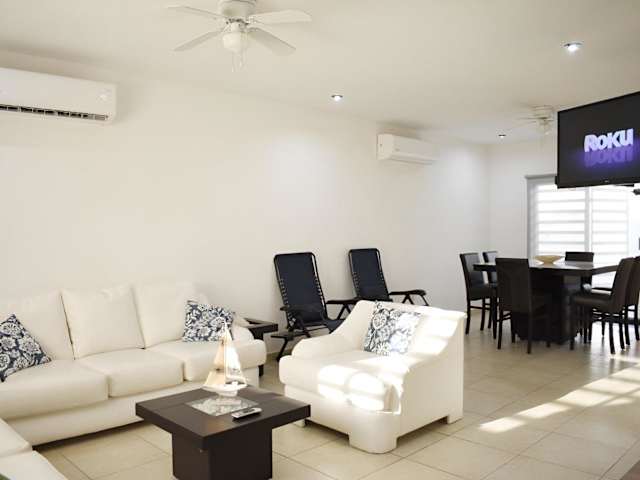 ALBERCA 3 HABITACIONES, CERCA DE LA PLAYA, Cantera Residencial bietet Übernachtungsmöglichkeiten in einem Ferienhaus mit einem heimeligen Ambiente. Die Unterkunft umfasst einen eigenen Pool, einen Garten und eine kostenfreie Privatparkiermöglichkeit. Es handelt sich um eine Nichtraucherunterkunft, in der öffentliche und private Bereiche strikte Nichtraucherzonen sind. Die Sicherheit wird durch 24-Stunden-Sicherheitspersonal gewährleistet.