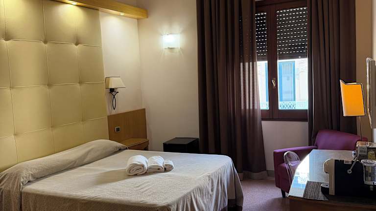 Die Zimmer im Albergo Russo sind mit einem Schreibtisch, einem Flachbild-TV, Klimaanlage und einem Kühlschrank ausgestattet. Jedes Zimmer hat ein eigenes Badezimmer mit einem Bidet und kostenlosen Pflegeprodukten. Einige Zimmer verfügen zusätzlich über einen Balkon. Die Unterkunft umfasst Nichtraucherzimmer sowie Familienzimmer.