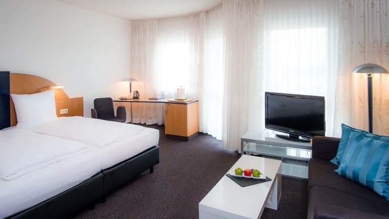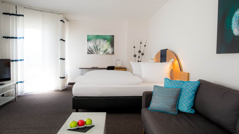 Unsere hellen Zimmer sind großzügig angelegt und besitzen meist große Balkone. Die geräumigen Bäder in Natursteinoptik runden das Wohlfühlpaket ab. Ausstattung: WC, Bad/Dusche, Haartrockner, Flatscreen-TV mit integrierten Radio, W-Lan, Minibar