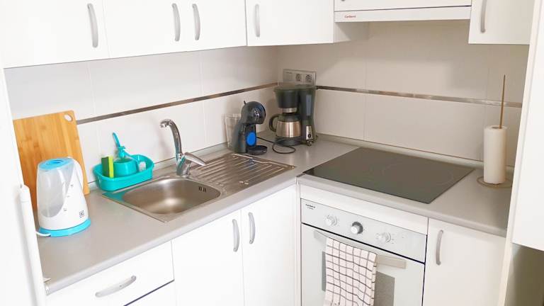 Die Ferienwohnung umfasst ein Schlafzimmer, ein Wohnzimmer sowie eine voll ausgestattete Küche mit Kühlschrank und Kaffeemaschine. Das Badezimmer ist mit einem Bidet und einer Dusche ausgestattet. Handtücher und Bettwäsche werden bereitgestellt. Klimaanlage ist ebenfalls vorhanden.
