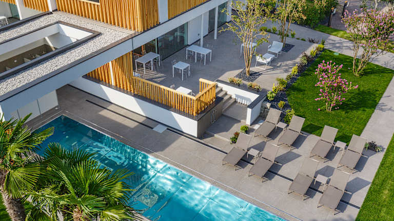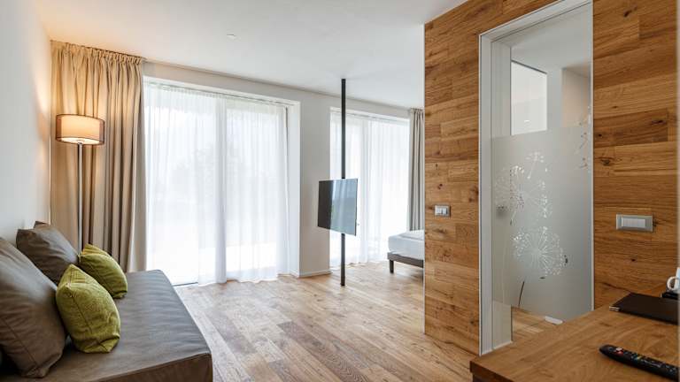 Der ideale Ort für einen Urlaub mitten in der Natur, fernab vom Verkehr. Dazu moderne und komfortable Räumlichkeiten sowie eine wunderbare Frühstücksterrasse mit Blick auf Weinberge und Apfelhaine… All das in unmittelbarer Nähe zum Ortszentrum von Arco. Somit ist das Alea Garda Lake Suite der ideale Ausgangspunkt für gemütliche Wanderungen, spannende Kletterpartien und Bike-Touren in den Bergen. Genauso wohltuend sind besondere Entspannungsmomente im Schwimmbad des Hauses. Gästen steht ein Parkplatz (kostenlos) inklusive E-Ladestation und ein videoüberwachtes Bike-Depot zur Verfügung. Darüber hinaus gibt es einen Fahrrad-Verleih.