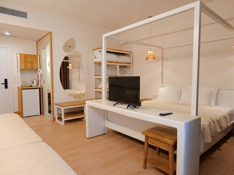Die Unterkunft bietet Zimmer mit einem TV sowie einem eigenen Badezimmer, das mit kostenlosen Pflegeprodukten, einem Haartrockner und einer Dusche ausgestattet ist. Einige Wohneinheiten verfügen über einen Balkon und/oder eine Veranda mit Meer- oder Bergblick.