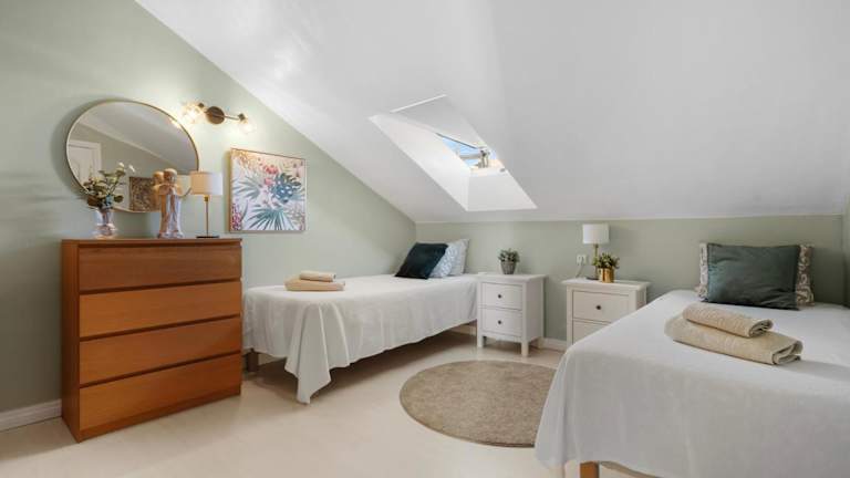 Die Ferienwohnung besteht aus 4 Schlafzimmern, einem Wohnzimmer und einer voll ausgestatteten Küche mit Kühlschrank und Kaffeemaschine. Zudem gibt es 3 Badezimmer, die mit einer Dusche und kostenlosen Pflegeprodukten ausgestattet sind. Handtücher und Bettwäsche werden zur Verfügung gestellt.