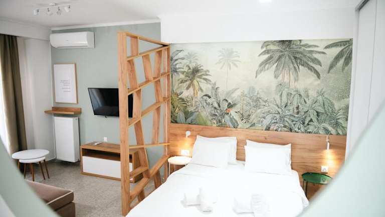 In der Unterkunft Alexandros sind alle Zimmer ausgestattet mit Klimaanlage, einem Schreibtisch, einer Terrasse mit Stadtblick, einem eigenen Badezimmer, einem Flachbild-TV sowie Bettwäsche und Handtüchern. Die Zimmer sind zudem versehen mit einer Kaffeemaschine – einige Zimmer verfügen über eine Küche mit einem Ofen und einer Herdplatte. Des Weiteren bieten die Zimmer einen Kühlschrank.