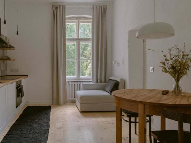 Die Ferienwohnung besteht aus einem Schlafzimmer, einem Wohnzimmer und einer voll ausgestatteten Küche mit Kühlschrank und Wasserkocher. Zudem gibt es ein Badezimmer mit Badewanne und kostenlosen Pflegeprodukten. Handtücher und Bettwäsche werden bereitgestellt.
