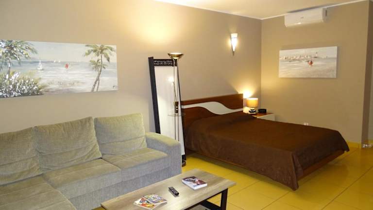 Alle Wohneinheiten verfügen über Meer- oder Bergblick und sind ausgestattet mit einer Küche, einem Satelliten Flachbild-TV, einem Blu-ray-Player, einem Schreibtisch, einer Waschmaschine sowie einem eigenen Badezimmer mit einem Bidet und kostenlosen Pflegeprodukten. Zu den Kücheneinrichtungen gehören Kühlschrank, Geschirrspüler, Ofen, Kaffeemaschine und Wasserkocher.