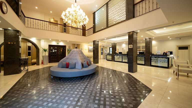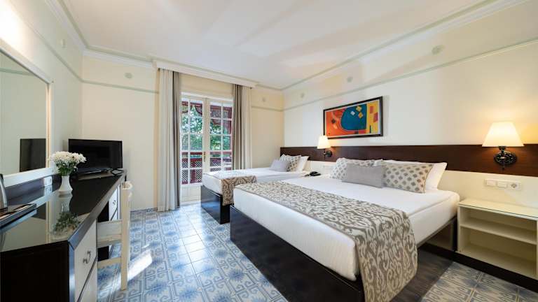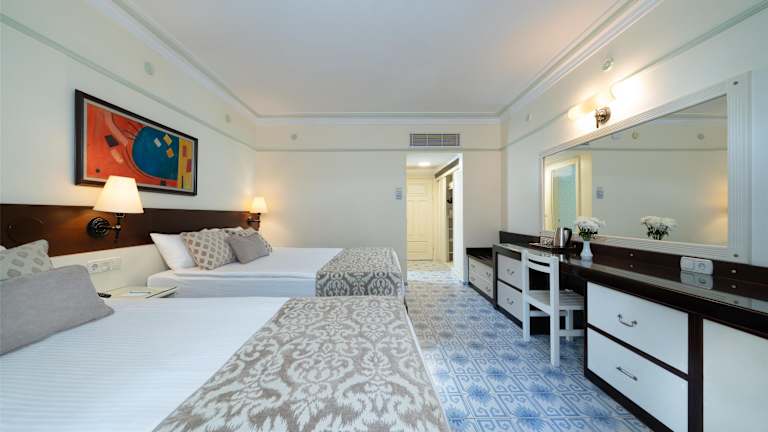 Die großzügige, direkt am Strand gelegene Club-Anlage bietet alles, was Ihren Urlaub zum Erlebnis werden lässt: Wasserspaß im Aquapark, an den Pools oder am Meer. Mini Club, professionelle Kinderbetreuung und Kinderanimationen zeichnen den Club als besonders familienfreundlich aus. 62 feinste Tennisplätze, faszinierende sportliche Aktivitäten, ein umfangreiches Fitness- und Wellnessprogramm, professionelle Tanzshows und Musicals lassen keine Wünsche offen. Es zählt zu jenen Häusern in der Türkei, die 2014 das Zertifikat HolidayCheck Quality Selection erhalten haben. Architektonische Gestaltung der Häuser im osmanischem Stil, großzügige, geschmackvoll eingerichtete Zimmer, luxuriöses Ambiente in einer traumhaften Grünanlage, traditionelle Karawansereien, hübsche Innenhöfe. Das Anatolia Dorf und der Alibaba Bazaar liegen unweit von der Unterkunft.