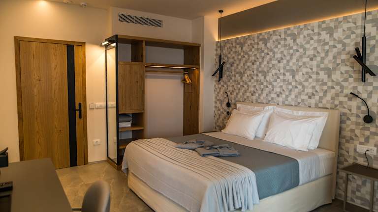 Die klimatisierten Zimmer sind in einem angenehmen Ambiente gestaltet und verfügen über einen Kleiderschrank, eine Kaffeemaschine, eine Minibar, einen Flachbild-TV sowie ein eigenes Badezimmer mit Dusche. Die meisten Zimmer bieten einen schönen Meerblick. Zustellbetten können bereitgestellt werden. WiFi ist ohne Gebühr in der Grundausstattung der Zimmer enthalten. Nichtraucher- und Familienzimmer sind ebenfalls verfügbar.