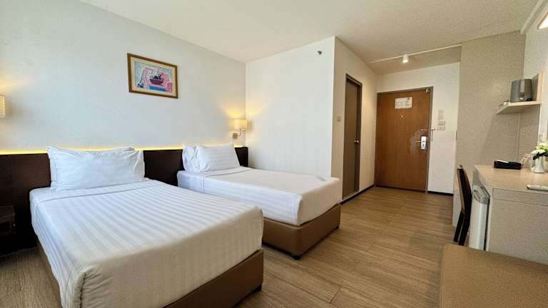 Das Hotel liegt im Pratunam Viertel von Bangkok. In der näheren Umgebung finden die Gäste lokale Märkte, internationale Einkaufszentren, das zentrale Geschäftsviertel sowie zahlreiche Unterhaltungsmöglichkeiten. Der Suanpakkad Palast und der Suansantipab Park sind in etwa 5 Gehminuten erreichbar. Die BTS Sky Zug Station (Victory Monument) befindet sich in unmittelbarer Nähe. Zudem bietet das Hotel direkten Zugang zur Autobahn, was eine zügige Verbindung zum internationalen Don Muang Flughafen, ca. 30 km entfernt, ermöglicht.