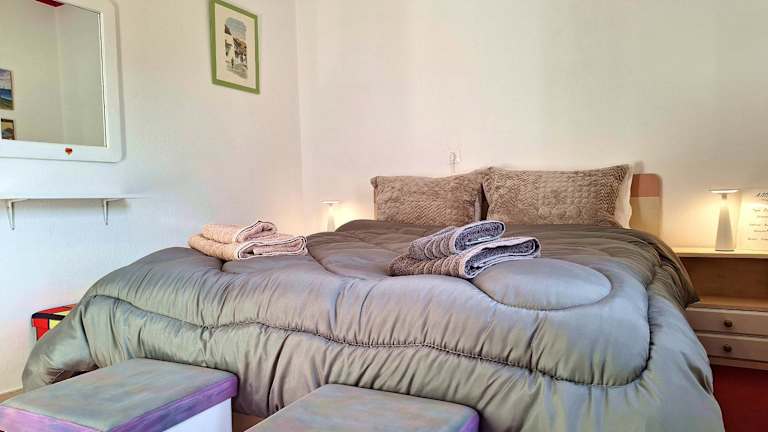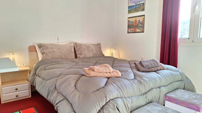 Die Ferienwohnung verfügt über ein Schlafzimmer, ein Wohnzimmer und eine voll ausgestattete Küche mit Kühlschrank und Kaffeemaschine. Sie beinhaltet ein Badezimmer mit Bidet und Dusche. Handtücher und Bettwäsche werden bereitgestellt, und die Unterkunft ist klimatisiert sowie schallisoliert.
