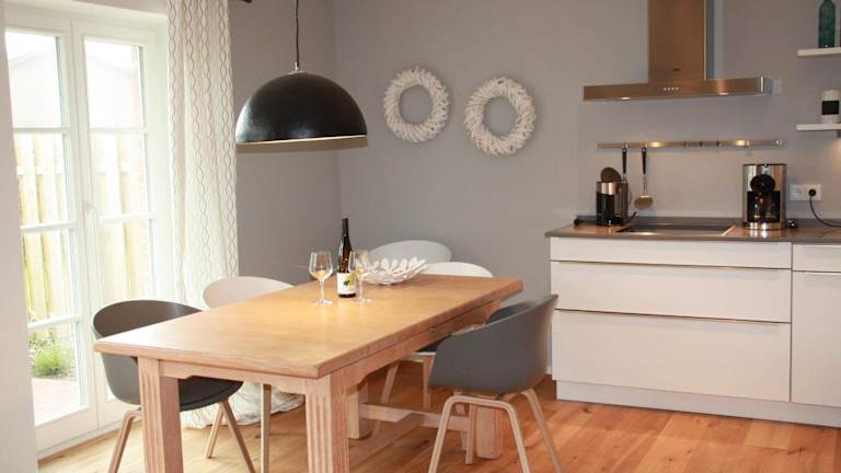 Das Ferienhaus verfügt über 3 helle Schlafzimmer sowie eine Küche, die mit einem Kühlschrank und einem Geschirrspüler ausgestattet ist. Es stehen 2 Badezimmer mit Dusche, Haartrockner und Waschmaschine zur Verfügung. Zudem bietet das Ferienhaus einen TV und einen CD-Player.