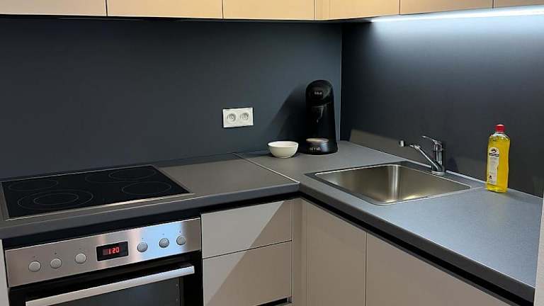 Die Unterkunft verfügt über eine voll ausgestattete Küche mit Kühlschrank und Kaffeemaschine, was eine individuelle Verpflegung ermöglicht. Es sind keine weiteren Informationen zu Verpflegungsmöglichkeiten vorhanden.