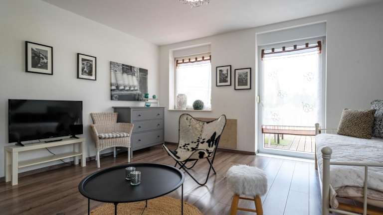 Die Ferienwohnung besteht aus zwei Schlafzimmern, einem Wohnzimmer, und einer voll ausgestatteten Küche, die über einen Kühlschrank und eine Kaffeemaschine verfügt. Es gibt ein Badezimmer, das mit einer Badewanne oder Dusche sowie einem Haartrockner ausgestattet ist. Handtücher und Bettwäsche werden ebenfalls bereitgestellt. Die Unterkunft ist rauchfrei und bietet Nichtraucherzimmer.