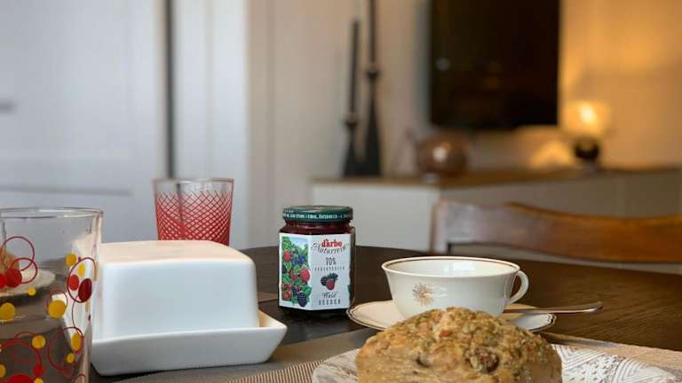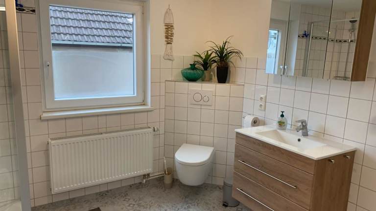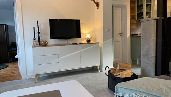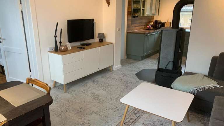 Die Ferienwohnung verfügt über ein Schlafzimmer, ein Wohnzimmer mit Flachbild-TV, eine gut ausgestattete Küche mit Kühlschrank und Geschirrspüler sowie ein Badezimmer mit Dusche. Weiterhin sind Handtücher und Bettwäsche vorhanden.