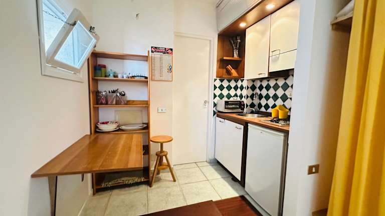 Jede Wohneinheit verfügt über ein eigenes Badezimmer mit Bidet, Klimaanlage, Flachbild-TV und Kühlschrank. Ein voll ausgestattetes Bad mit Dusche und Haartrockner ist ebenfalls vorhanden. Bettwäsche und Handtücher sind nicht im Preis inbegriffen und können für einen Aufpreis von 15 EUR pro Person gemietet werden.