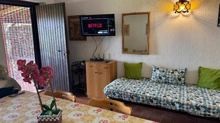 Die Ferienwohnung verfügt über ein Schlafzimmer, eine Küche mit Kühlschrank und Herdplatte sowie ein Badezimmer mit Bidet und kostenlosen Pflegeprodukten. Eine Waschmaschine ist ebenfalls vorhanden. Der Flachbild-TV sorgt für Unterhaltung.
