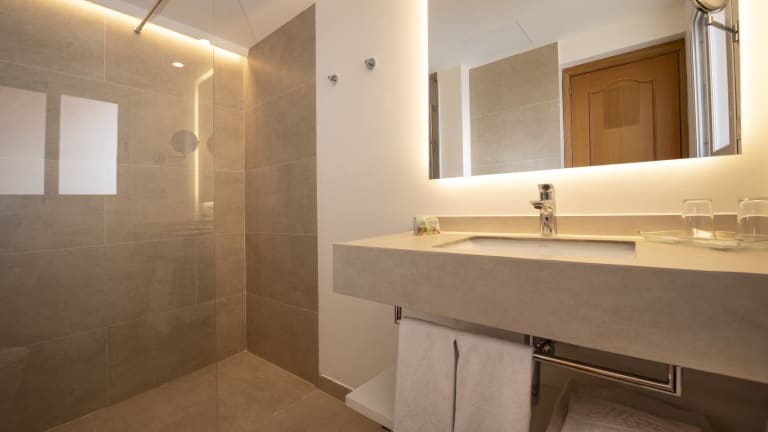 Alle Zimmer wurden im Winter 2022/23 renoviert und sind zweckmäßig eingerichtet. Die neuen Bäder wurden u.a. mit bodengleicher Dusche ausgestattet. Wahlweise sind die Zimmer auch mit Panoramablick zur Meerseite buchbar.