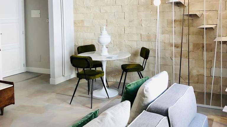 Die Ferienwohnung umfasst ein Schlafzimmer, ein Wohnzimmer sowie eine voll ausgestattete Küche mit Kühlschrank und Kaffeemaschine. Weiterhin stehen ein Badezimmer mit Bidet und Dusche sowie Handtücher und Bettwäsche zur Verfügung.