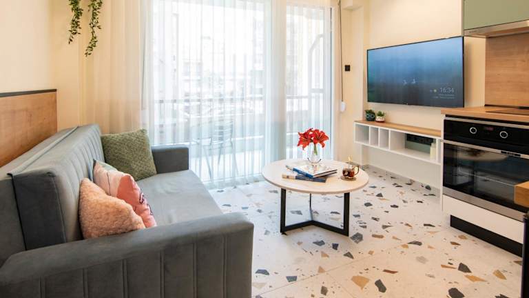 Almasi Luxury Suites Emerald ist eine Ferienwohnung, die mit einem wunderschönen Gartenblick überzeugt. Sie bietet Übernachtungsmöglichkeiten mit einer einladenden Terrasse und einem Balkon, ideal für entspannte Momente im Freien. Die Unterkunft ist klimatisiert und umfasst alles, was für einen angenehmen Aufenthalt nötig ist.