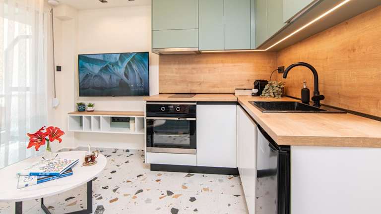 Die Ferienwohnung besteht aus einem Schlafzimmer und einem Wohnzimmer. Sie ist zudem mit einer voll ausgestatteten Küche inkludiert, die über einen Kühlschrank und eine Kaffeemaschine verfügt. Das Badezimmer ist mit einer Dusche und einem Haartrockner ausgestattet. Handtücher und Bettwäsche werden bereitgestellt.