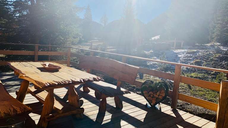 Die Unterkünfte bieten eine Terrasse mit Bergblick, einen Sitzbereich sowie einen Satelliten-Flachbild-TV. Die voll ausgestattete Küche umfasst einen Kühlschrank, Geschirrspüler, Ofen, Herdplatte, Toaster, Kaffeemaschine und Wasserkocher. Ein Gemeinschaftsbad mit Dusche und Haartrockner ist ebenfalls vorhanden.