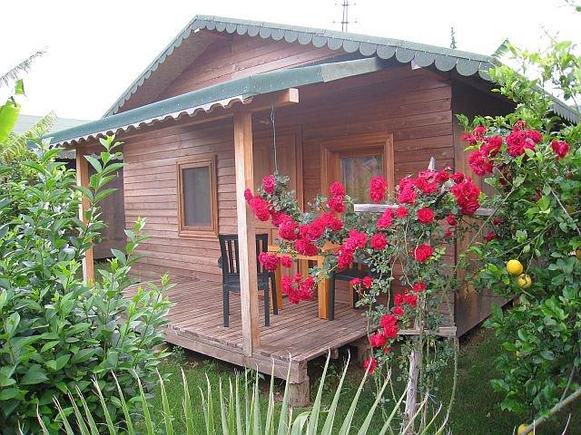 Gepflegter Garten mit Granatäpfeln, Bananenstauden und Zitrusfürchten mit Blick auf Berge.… weiterlesen