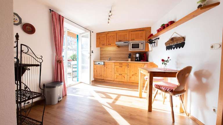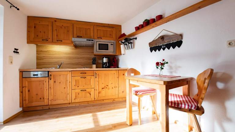 Die Ferienwohnung ist mit einem Wohnzimmer und einer voll ausgestatteten Küche versehen, die einen Kühlschrank und einen Geschirrspüler beinhaltet. Handtücher und Bettwäsche werden zur Verfügung gestellt.