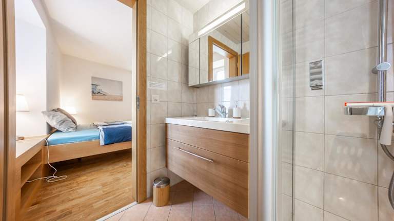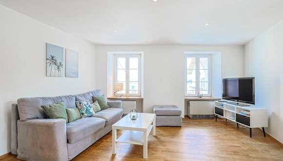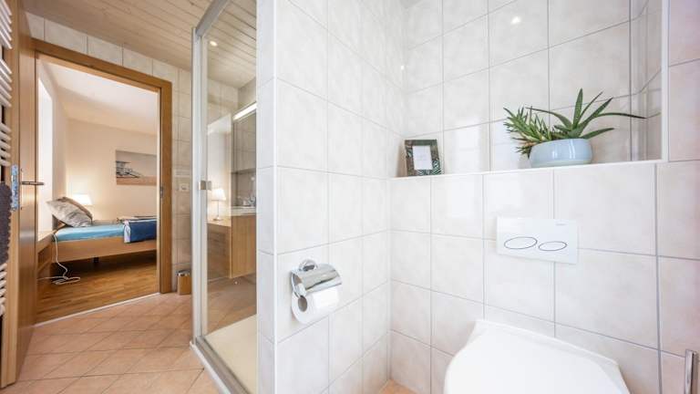 Die Ferienwohnung hat ein Schlafzimmer, ein Wohnzimmer mit Flachbild-TV, ein Badezimmer mit Dusche sowie eine Terrasse. Handtücher und Bettwäsche werden bereitgestellt.