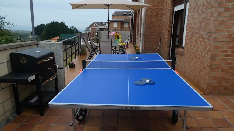 Tischtennis ist verfügbar und sorgt für unterhaltsame Momente. Die Umgebung eignet sich hervorragend für Outdoor-Aktivitäten und das Velofahren.