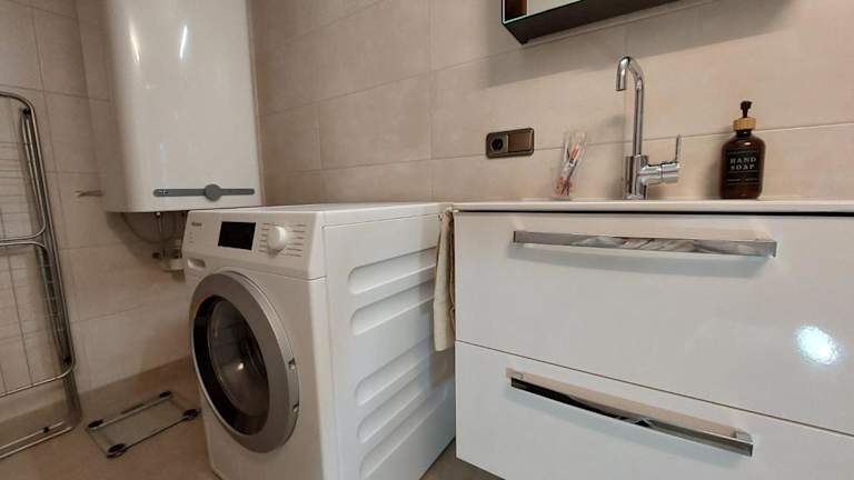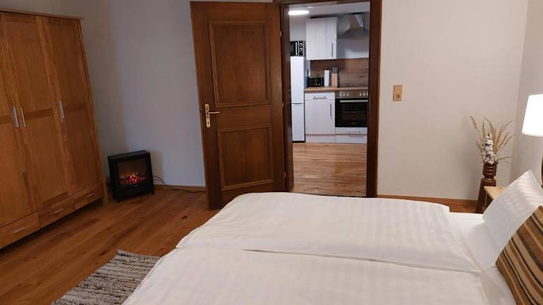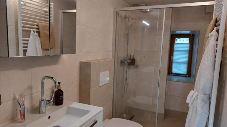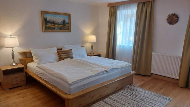 Die Ferienwohnung umfasst ein Schlafzimmer, ein Wohnzimmer sowie eine gut ausgestattete Küche mit Kühlschrank und Geschirrspüler. Zudem bietet die Unterkunft ein Badezimmer mit Dusche und eine Terrasse mit Blick auf die Berge. Handtücher und Bettwäsche werden bereitgestellt.