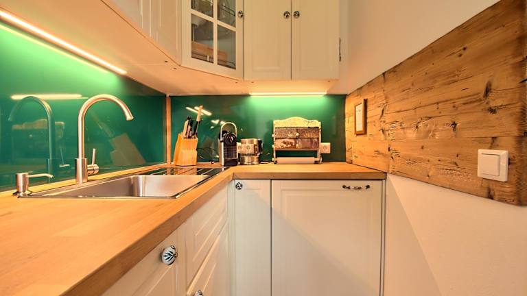 Die Ferienwohnung bietet ein Schlafzimmer und ein Badezimmer. Zur Ausstattung gehören Bettwäsche, Handtücher, ein Flachbild-TV mit Kabelkanälen, ein Essbereich sowie eine voll ausgestattete Küche. Zusätzlich verfügt die Unterkunft über einen Balkon mit Bergblick.