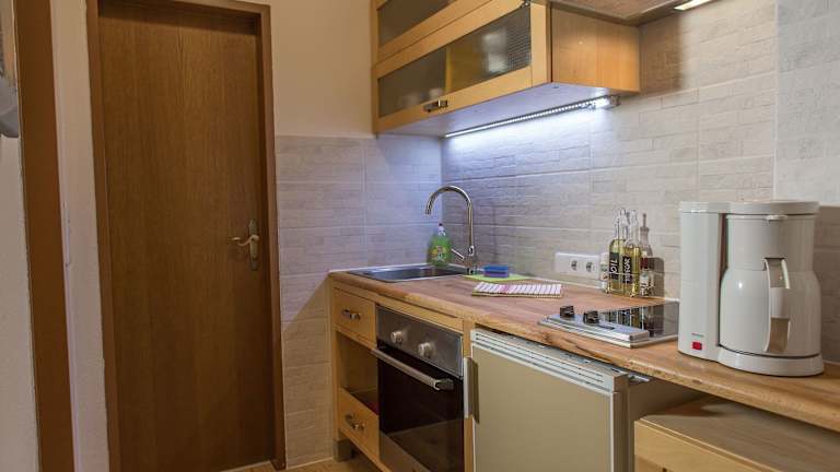 Die Appartements sind ausgestattet mit einem Sitzbereich, einem Kabel Flachbild-TV sowie einer voll ausgestatteten Küche mit Kühlschrank, Ofen, Herdplatte, Toaster, Kaffeemaschine und Wasserkocher. Jedes Appartement verfügt über ein eigenes Badezimmer mit Dusche und Haartrockner.