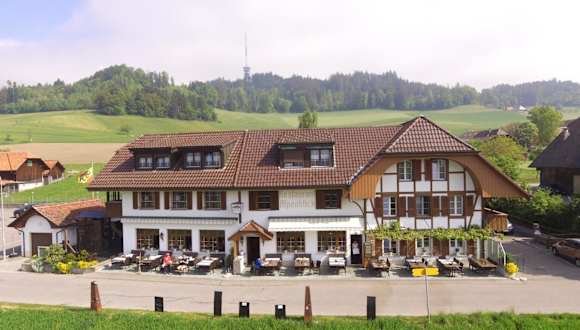 Der Gasthof Alpenblick befindet sich im kleinen Dorf Ferenberg, nur 9 km von Bern entfernt, und bietet einen herrlichen Panoramablick auf die Berner Alpen. Der Bahnhof von Stettlen liegt 2 km entfernt.