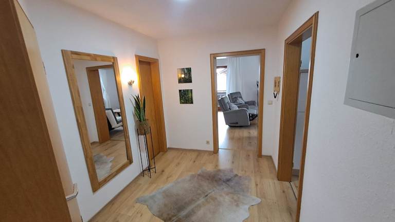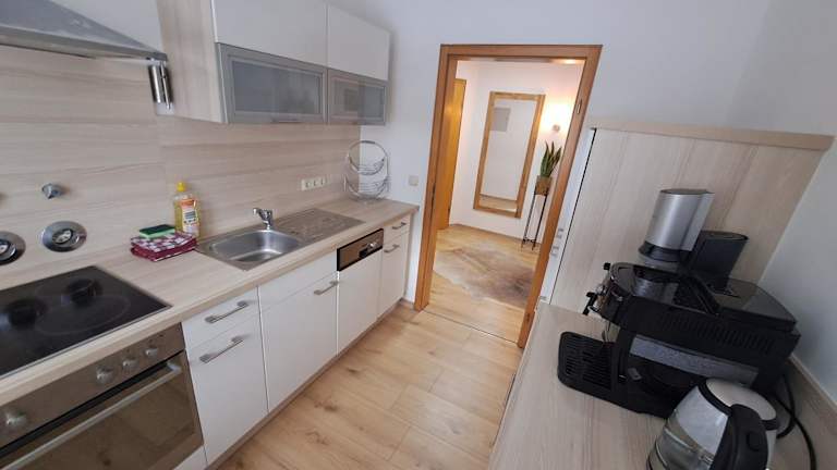 Die Ferienwohnung verfügt über ein Schlafzimmer, ein Wohnzimmer und ein Badezimmer. Zur Ausstattung gehören ein Flachbild-TV, eine gut ausgestattete Küche mit Kühlschrank und Geschirrspüler sowie eine Dusche. Handtücher und Bettwäsche werden bereitgestellt. Zudem gibt es einen Balkon mit Bergblick.