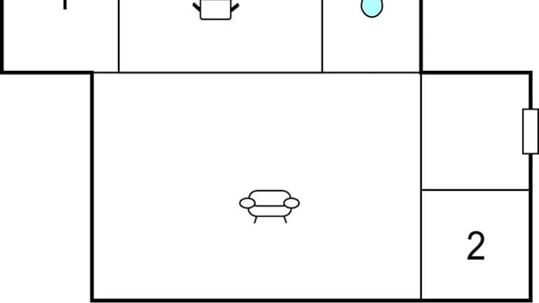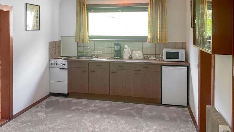 Das Ferienhaus verfügt über zwei Schlafzimmer, ein Wohnzimmer sowie eine voll ausgestattete Küche mit einem Kühlschrank und einer Herdplatte. Zur Ausstattung zählen auch Gartenmöbel sowie Heizungsanlagen. Rauchmelder sind ebenfalls vorhanden.