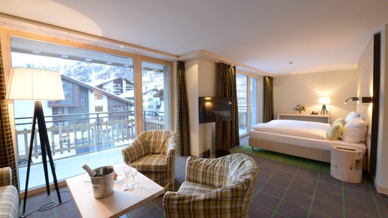 Jedes der hellen, im alpinen Stil eingerichteten Zimmer ist mit Kabel-TV und einer Nespresso-Kaffeemaschine ausgestattet. Die Zimmer zur Südseite verfügen zusätzlich über einen Balkon.