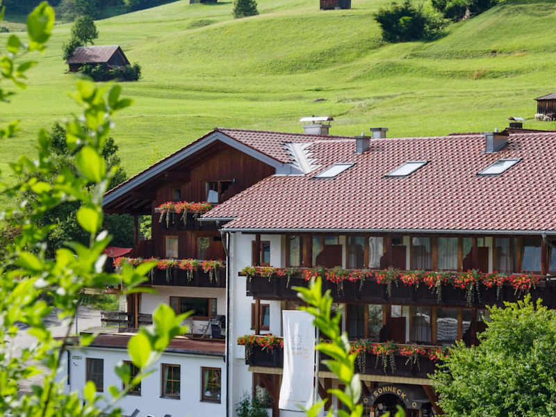 DAS SONNECK STELLT SICH VOR Sonne, Sonne, Sonne satt! Unser Haus liegt hoch über dem traditionsreichen Allgäuer Kurort Bad Hindelang und doch nur 5 Gehminuten vom Ortskern entfernt. Lage und südliche Ausrichtung garantieren Sonnenschein von früh bis spät und einen unverstellten Blick in die Ostrachtaler Bergwelt. Die überschaubare Hotelgröße von 22 Zimmern erlaubt uns, ehrliche, familiäre Gastfreundschaft zu leben. Wir verstehen uns als Gastgeber und tun alles dafür, dass Sie wunderbare Urlaubstage bei uns haben, die im Alltag noch lange positiv nachhallen. Neben den wohnlichen Zimmern, die sich perfekt als Rückzugsort eignen, stehen Ihnen die großzügige Sonnenterrasse, eine Liegewiese und unsere gemütliche Lounge zur Verfügung. Ihr Zimmer erreichen Sie in jeder Etage bequem per Aufzug. Das leckere Frühstückbuffet genießen Sie im hauseigenen Restaurant. Die Region Bad Hindelang steht zu 80% unter Naturschutz. Das Gebiet "Allgäuer Hochalpen" bietet unzählige wunderbare Spazier- und Wandertouren. Im Winter können Sie Langlaufen oder Skifahren und zu jeder Jahreszeit liegen lohnende Ausflugsziele in erreichbarer Nähe. In den verschiedenen Ortsteilen stoßen Sie auf Schätze aus Tradition und Handwerk. Weiterführende Informationen unter www.badhindelang.de.