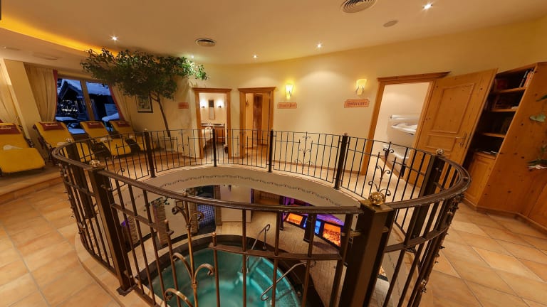 Im Wellnessbereich bieten wir einen schönen Liegeraum mit Blick in den Garten und auf die Berge, Getränkebar, Sonnenterrasse, Sommer-Freischwimmbad, grosser Hotwhirlpool, Kneippbach-Tretbecken, Aromadampfbad, Sole-Laconium, Finnische Sauna, Bio-Kräuterstadl-Sauna und Eisbrunnen. Gegen Gebühr: Massagen, Beautypool-Bäder, Solarium und hoteleigener Frisörsalon.
