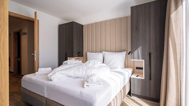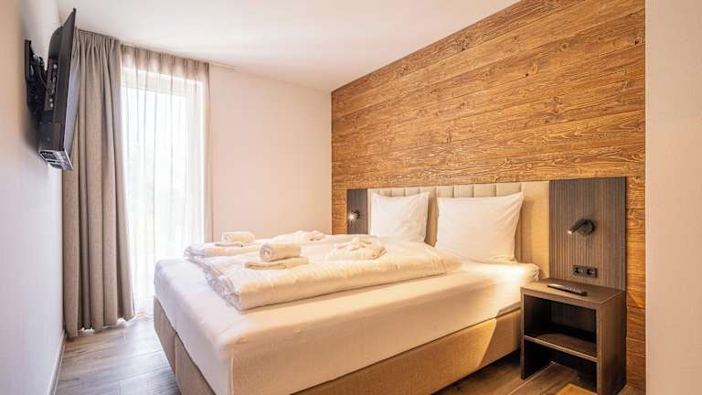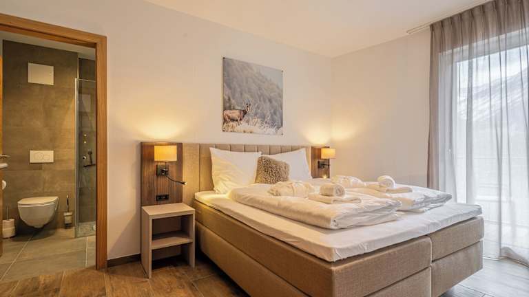 Die Apartments verfügen über einen Balkon mit Bergblick, einen Sitzbereich und einen Flachbild-TV. Eine voll ausgestattete Küche mit Kühlschrank, Geschirrspüler, Ofen, Herdplatte, Kaffeemaschine und Wasserkocher ist vorhanden. Jedes Apartment hat ein eigenes Badezimmer mit Dusche und kostenlosen Pflegeprodukten.