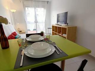 Die Ferienwohnung besteht aus 1 Schlafzimmer, einem Wohnzimmer und einer voll ausgestatteten Küche mit Kühlschrank und Kaffeemaschine. Das Badezimmer ist mit einem Bidet und einer Dusche ausgestattet. Handtücher und Bettwäsche werden bereitgestellt.