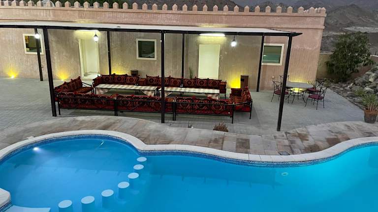 Alshahad farmhouse bietet eine komfortable Übernachtungsmöglichkeit in einem heimeligen Ambiente mit einem ganzjährig geöffneten Aussenpool und einem Garten. Die Unterkunft verfügt über eine 24-Stunden-Rezeption mit mehrsprachigen Mitarbeitenden, die Unterstützung und Informationen zur Umgebung bieten.