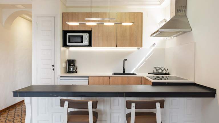 Die voll ausgestattete Küche umfasst eine Herdplatte, einen Kühlschrank, eine Mikrowelle, einen Toaster, eine Kaffeemaschine und einen Wasserkocher. Es sind jedoch keine Informationen über gastronomische Angebote wie Restaurants oder Verpflegung vorhanden.